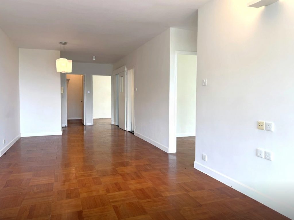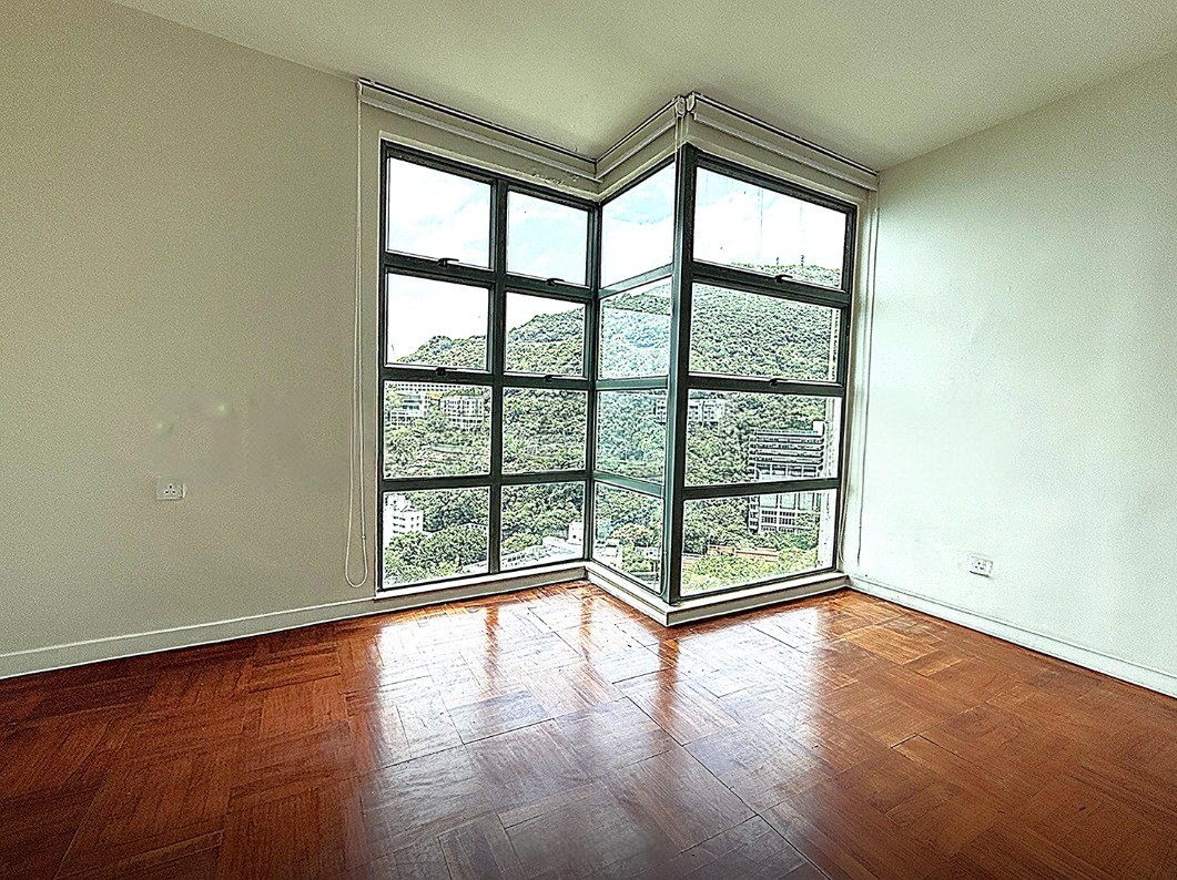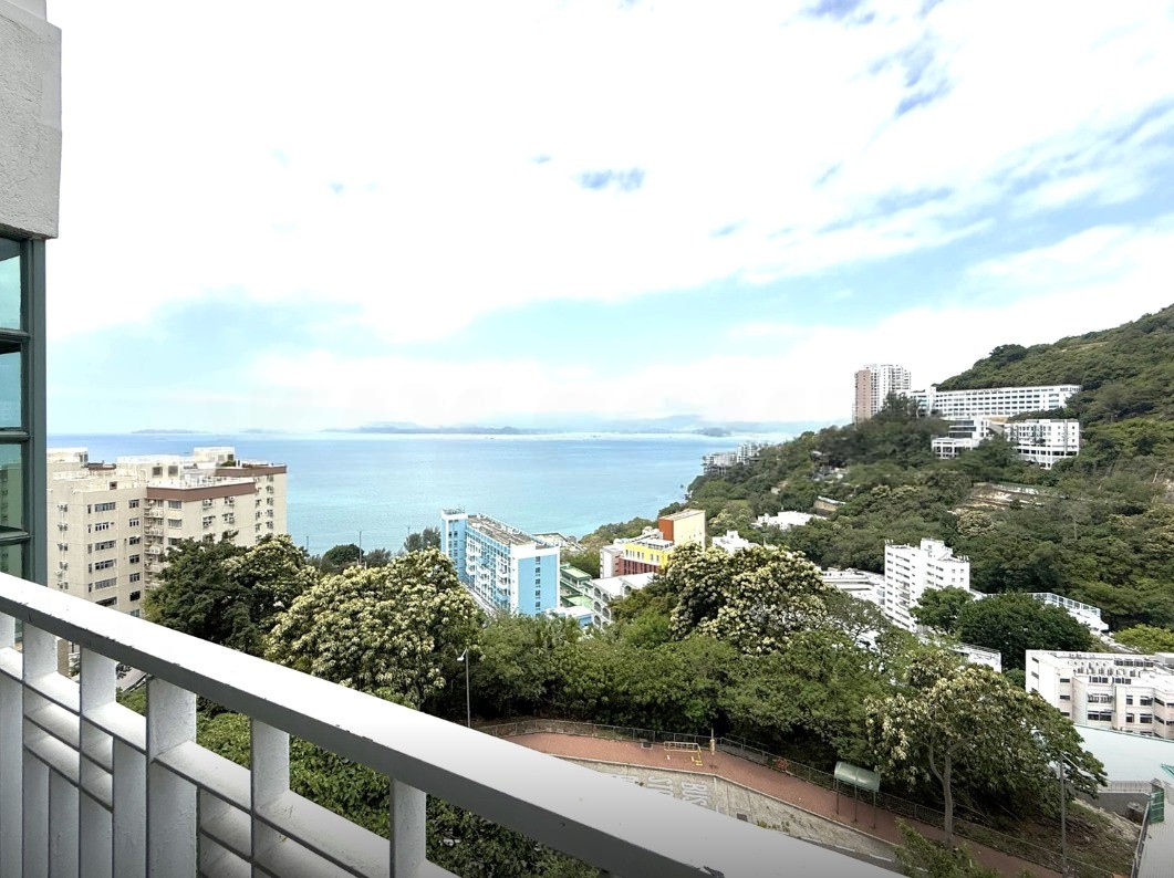 A spacious 3-bedroom apartment for rent in Bisney Terrace, 73 Bisney Road, Pokfulam. Features a balcony overlooking an open green, mountain, & sea views.