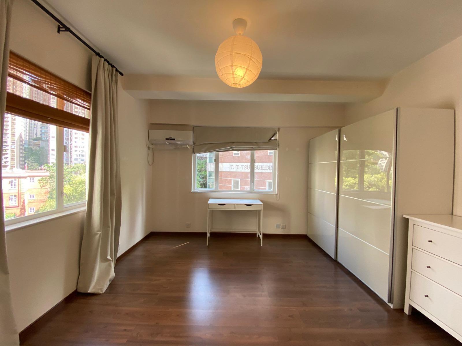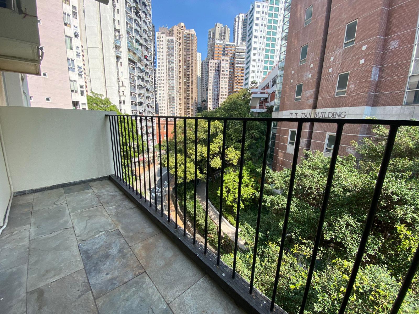 A spacious 3-bedroom apartment for rent in Lim Kai Bit Yip, ideally situated directly opposite the lush greenery of The University of Hong Kong, Bonham Road. Features a balcony extending from the living room overlooking a tranquil green view.