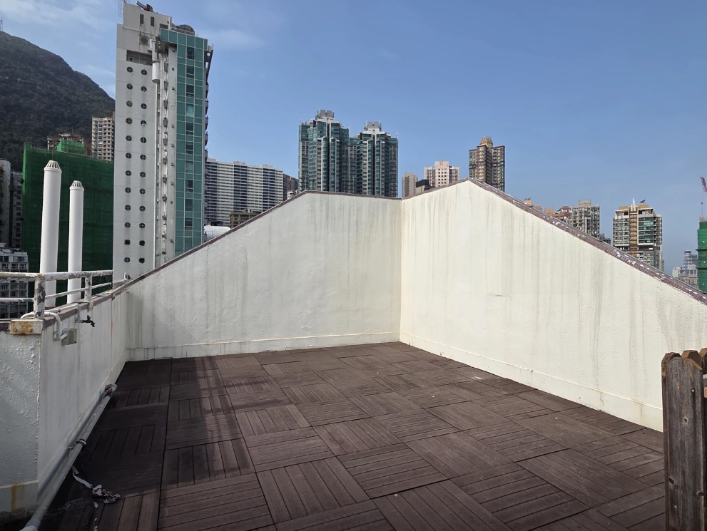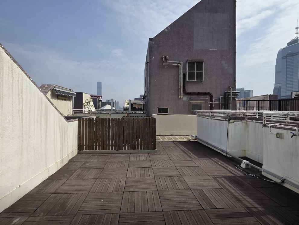 A cozy fully renovated 1-bedroom apartment for rent and for sale in Richview Terrace, 26 Square Street, Sheung Wan. Features a large private rooftop overlooking an open city view.