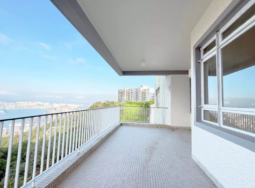 A grandiose 4-bedroom apartment for rent in Ridgeway on 33 Plantation Road, The Peak. Features a large balcony offering a panoramic view of Victoria Harbour.