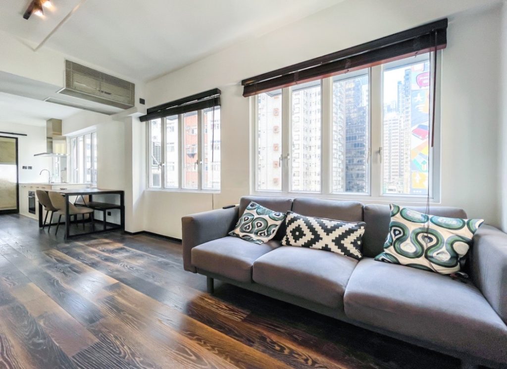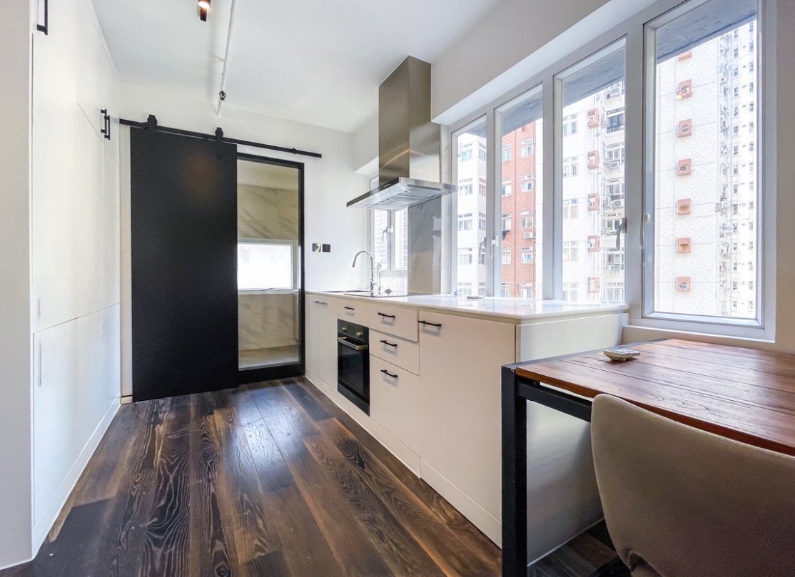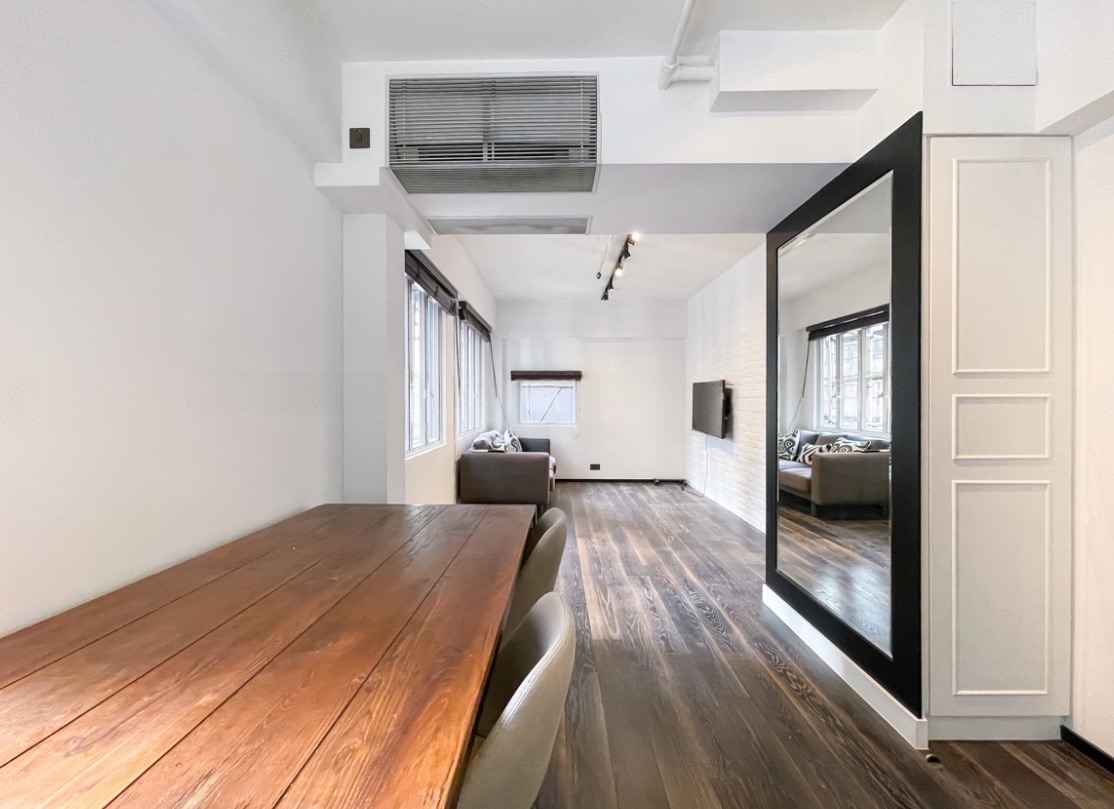 A spacious 1-bedroom commercial unit for rent in Tai Wong Commercial Building, located at 5-7 Queen's Road West in the bustling Sheung Wan district. Newly redesigned with premium finishes, featuring an open kitchen.
